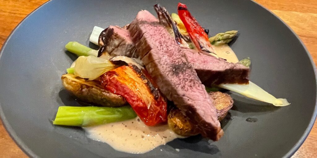 … butterzart! Für einmal sieben Stunden gegart und danach kurz gebräunt. Dazu grüner und weisser Spargel, Tomate, Kartöffelchen, Frühzwiebelchen, Peperoni und ein Tamarindenschaum. Darüber ein fermentiertes Shiso-Pülferchen à la maison. Mann hatte heute Zeit 😋😋😋