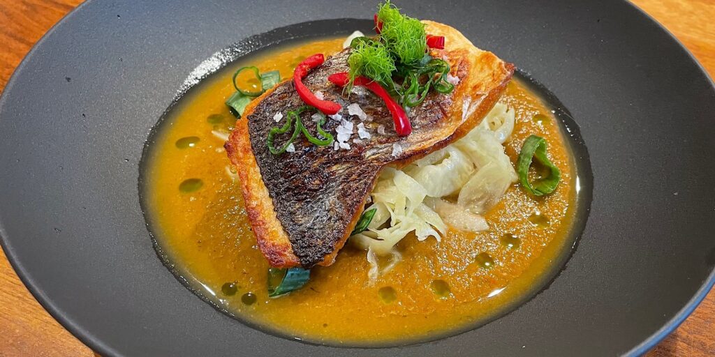 … unser neuer Sommerklassiker? Wir werden sehen! Knuspriger Wolfsbarsch auf erfrischendem Fenchel-Apfel-Salat an Limonen-Baumnuss-Dressing und würzigem Artischocken-Tomaten-Oliven-Spiegel 😋😋😋