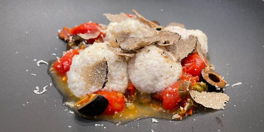 … auf Ragout von Tomaten, Oliven und Kapern mit Schweizer Trüffel 😋😋😋
