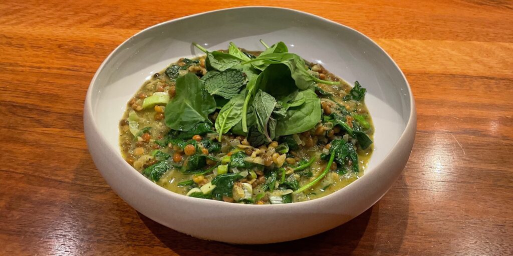 … a la Tanja – yummi! Berglinsen, Spinat, hausgemachte grüne Currypaste, und vielen vielen feinen Gewürzen wie Kreuzkümmel, Bockshornklee, Kardamon, Koreandersamen, Ingwer, Zwiebel, Knoblauch und und und . Eine wahre Geschmacksexplosion!