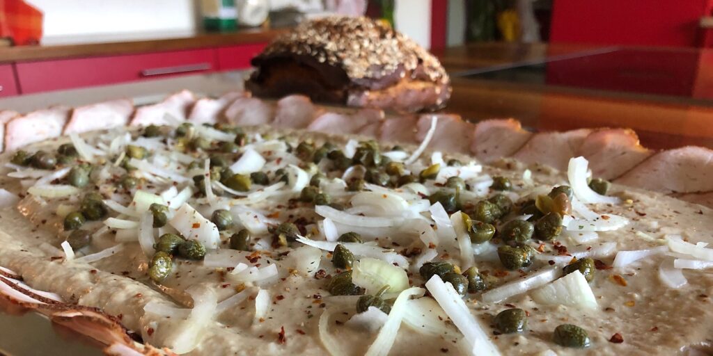… und doch für uns immer wieder ein Festessen: Tartar mit Zwiebeln, Chili, Bärlauchkapern, Trüffelbutter und viel, viel, viel Toastbrot 🙃🙃🙃!