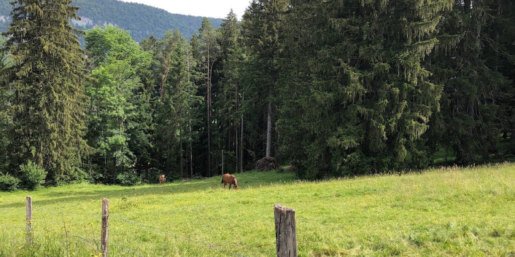… und auch typisch üs: Geocaching in der Natur, da dürfen die Pferde natürlich nicht fehlen im Jura!
