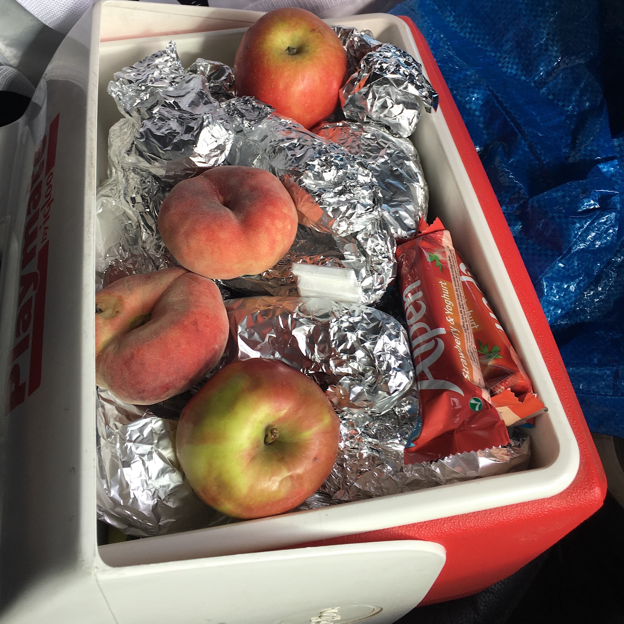 … anstelle des Frühstücks gewählt – um Zeit zu sparen für die Rückreise. Nun sind wir uns nicht ganz sicher, ob Gerhard (Koch und Besitzer des Hotels) wirklich weiss, dass wir aus der Schweiz und nicht von Südafrika kommen… 4 Sandviches, 4 gekochte Eier, Landjäger, Tomaten, Gurken, Käse, Peperoni, 2 Stück Traubenzucker, Äpfel, Pfirsiche, 2 Kraftriegel und vier Getränke hat er uns mitgegeben 😋🤪😋🤪…
