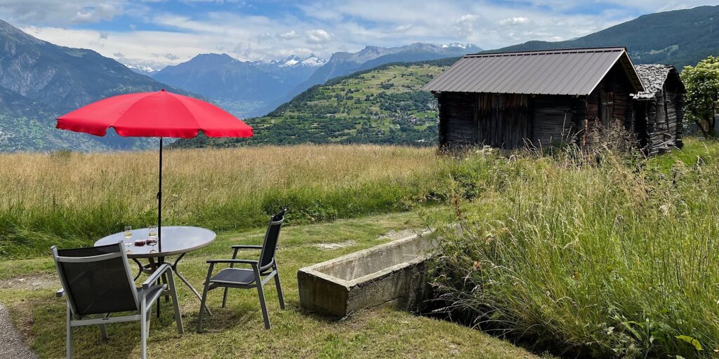 Unser Wölli hat uns tapfer ins Wallis und hoch hinauf in die Berge geführt. Nun parkt er matt im Schatten unseres Domizils, brummelt etwas vor sich hin und schnüffelt zwischendurch an der Sauerstoff-Flasche.