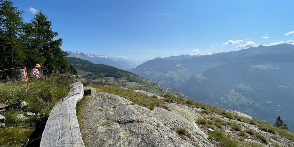 Fahrt mit dem Poschi auf die Moosalp, kurze Wanderung Panoramaweg zu super Aussichtspunkt. Da wir hier die einzigen waren, konnten wir die Aussicht etwa eine Stunde für uns alleine genießen.