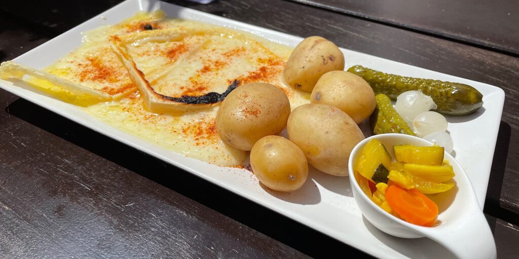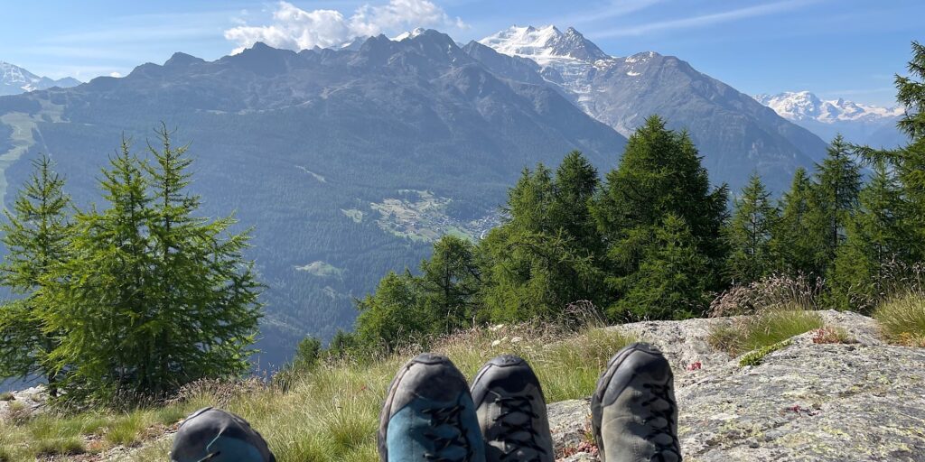Danach Wanderung zurück zur Moosalp und per Pedes ins Tal nach Zenhäusern (Knie lassen grüßen…). Unterwegs kurzer Stopp für ein feines Raclette, zubereitet von einem Ostschweizer 🤪🤪