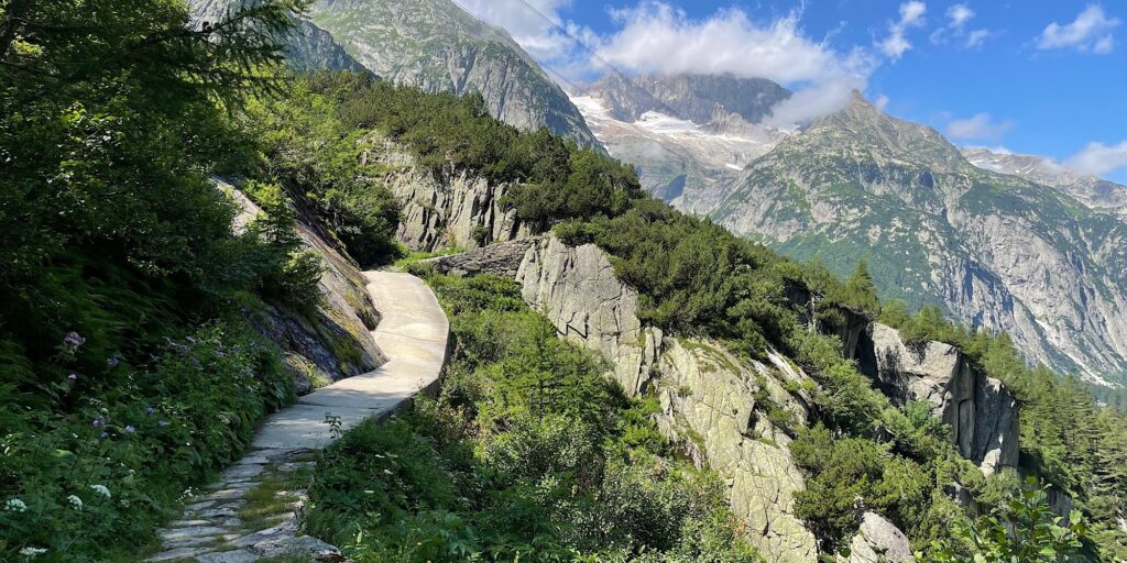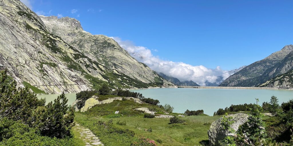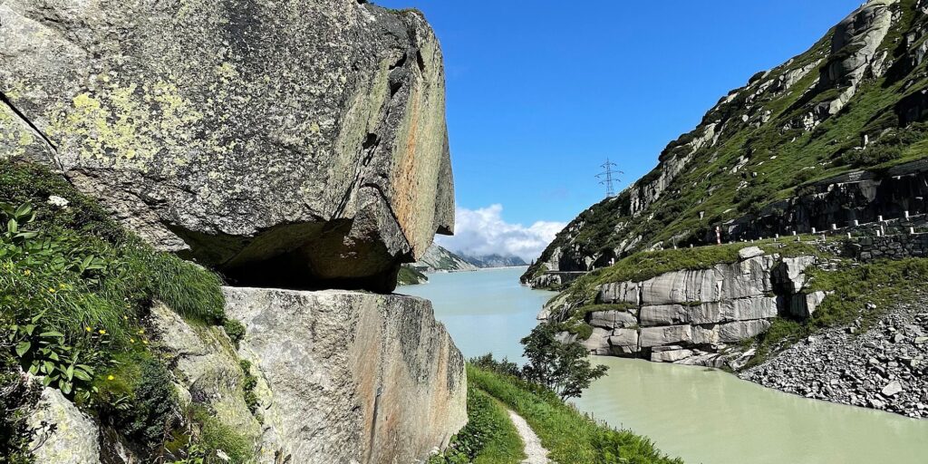 Heute Morgen nach dem Frühstück Fahrt mit den Auto nach Handeck und mit dem Postauto zurück zum Grimsel Hospiz. Aussteigen in der Haltestelle Summerloch. Gute Entscheidung, nach dem Ausstieg bremste das Postauto ca. nach 100-200 Meter nach der Haltestelle; Schlimmer Unfall, Rega Heli, Polizei. Wir aber konnten die wunderschöne Wanderung beginnen: Viel Abwechslung, schöne Wanderwege, schöne Landschaft, wir haben es sehr genossen!