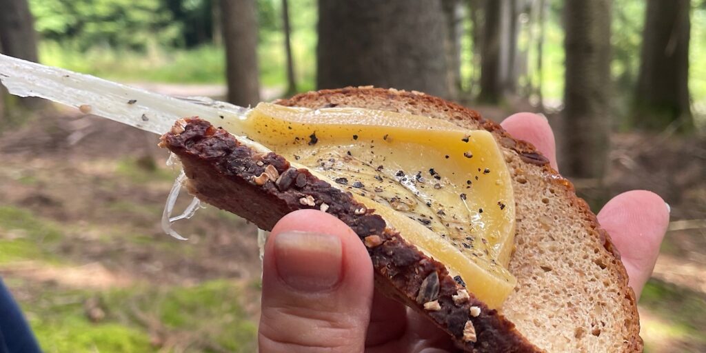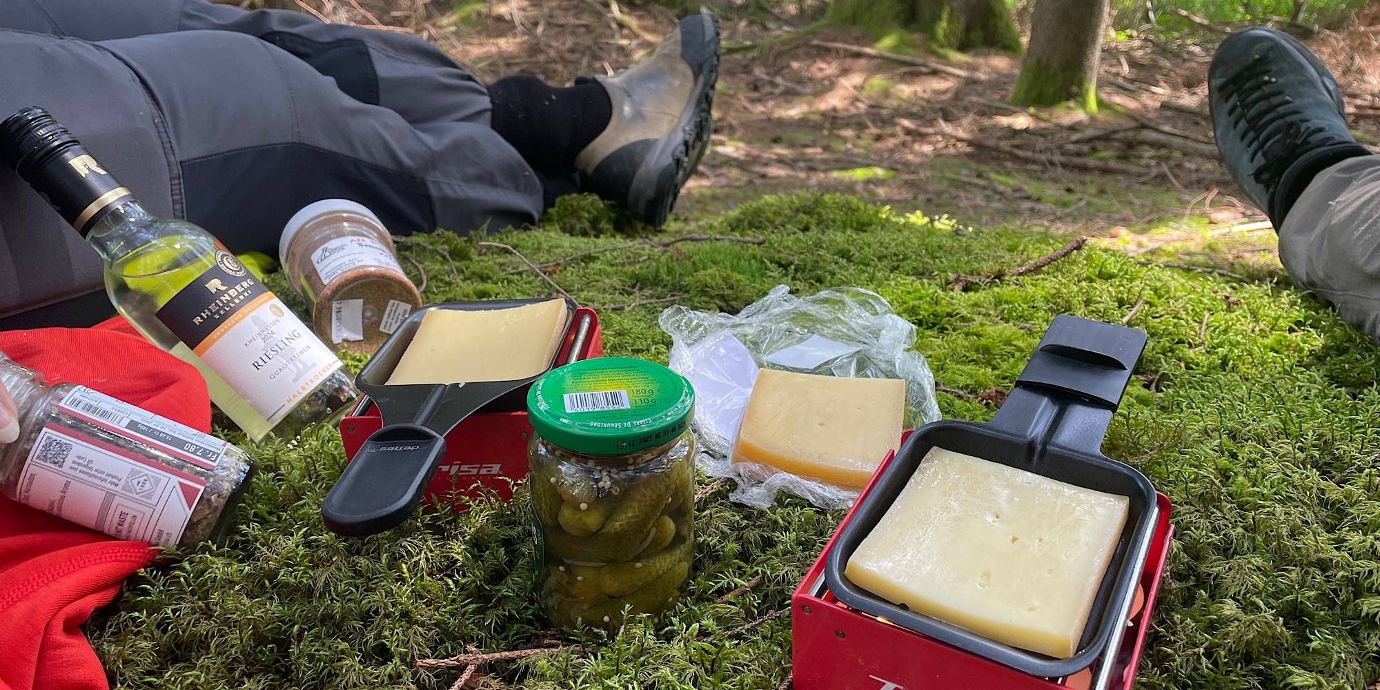 … bei sommerlichem Wetter. Die Runde: Na ja, die Landschaft: Wunderschön, das Raclette im Wald: Herrlich!!!