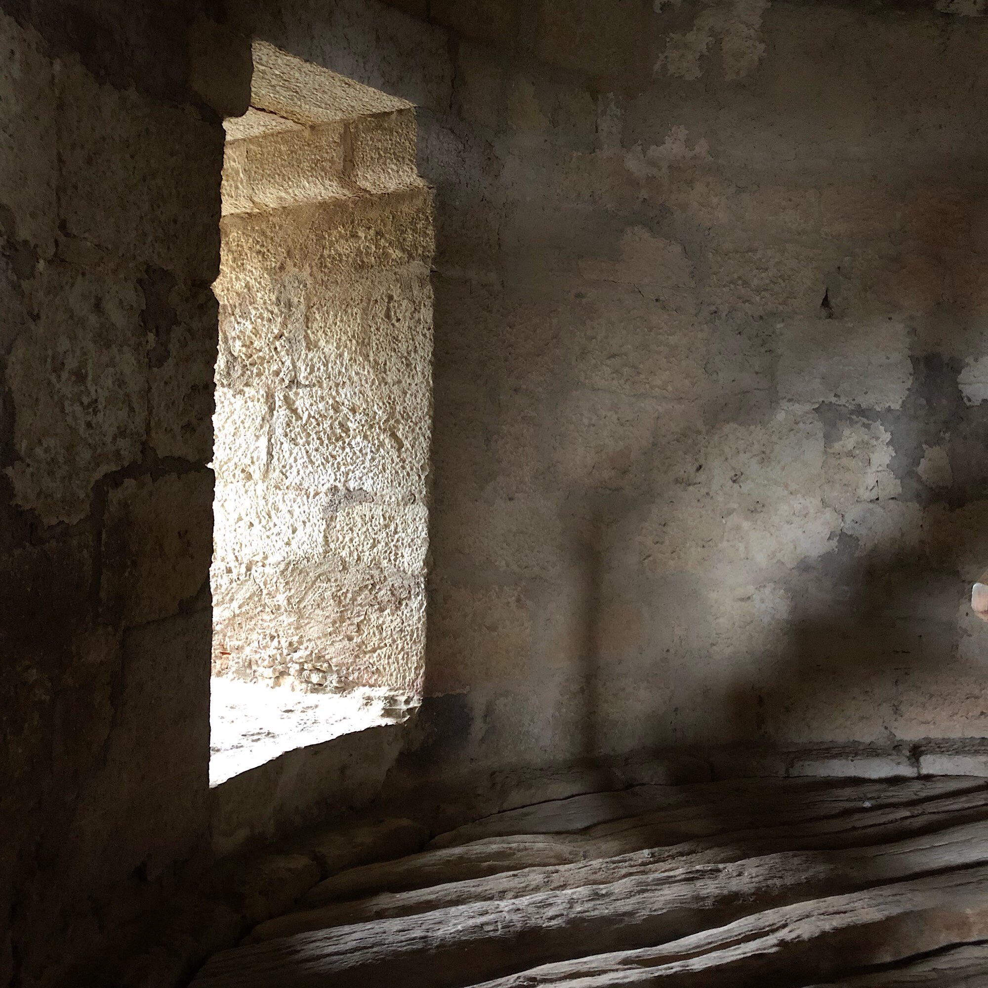 Der Aufstieg erfolgt im Dunkeln über eine schmale (!!!) Wendeltreppe und endet oben auf diesem Holzboden 🥴🥴🥴.